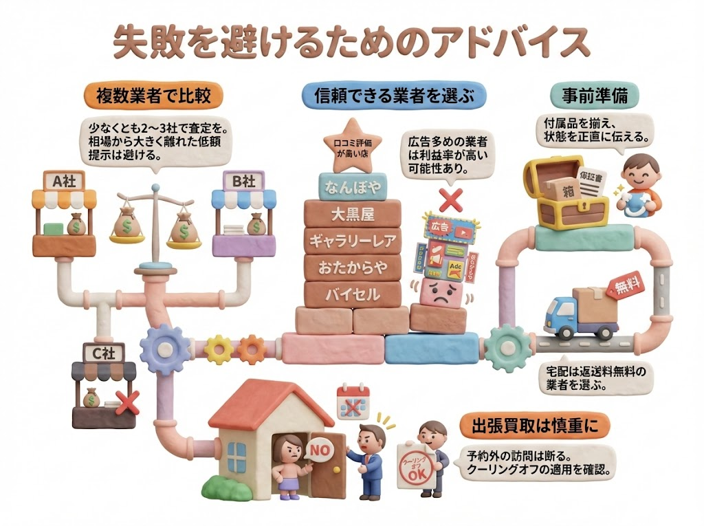 2025年全体や過去の傾向から、ブランド買取でよく報告される失敗パターンは以下の通りです。これらは国民生活センターや口コミサイト、買取専門メディアで繰り返し指摘されています。