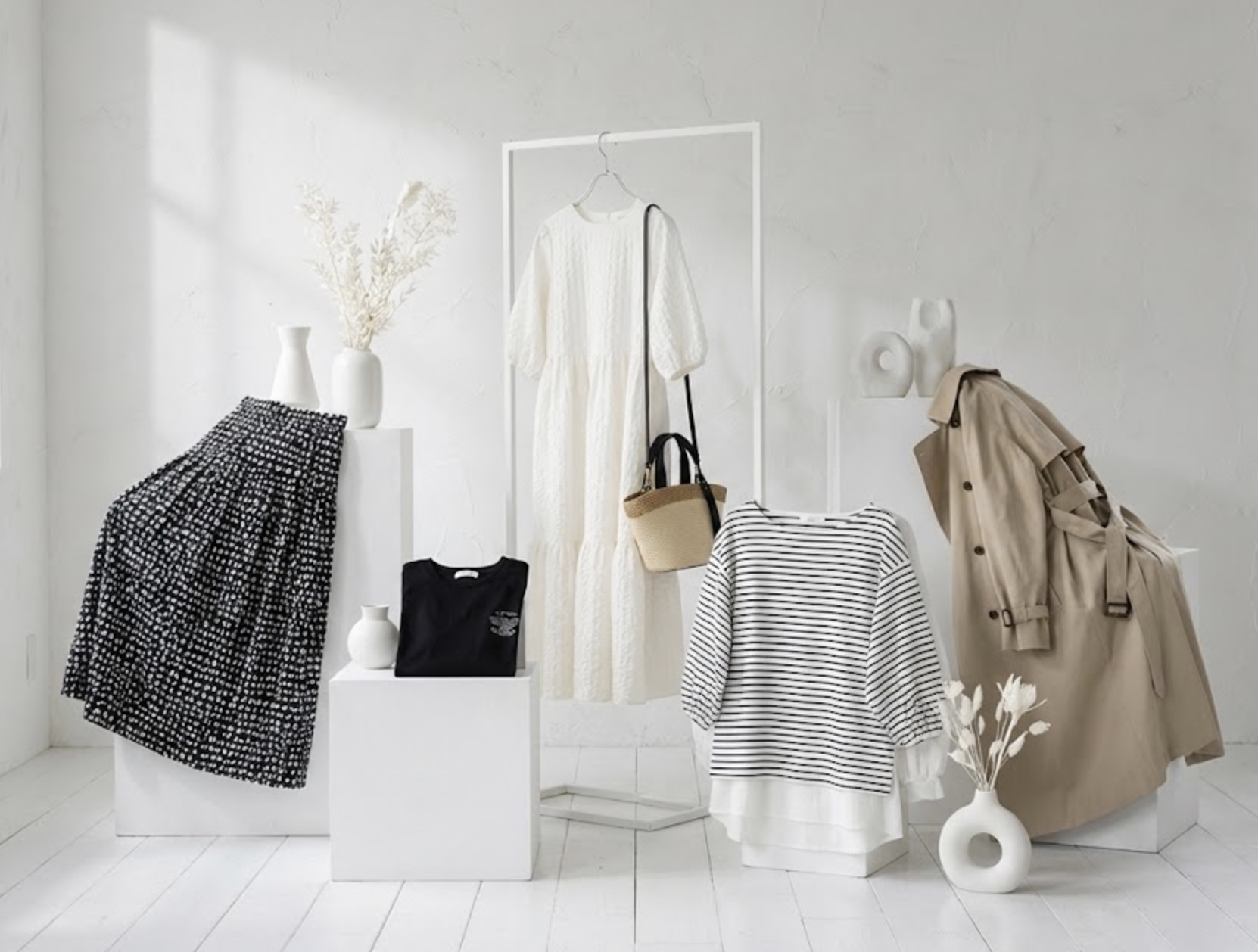 - ワンピース・ドレス:ローズプリントや総柄など、華やかなデザインは特に人気です。