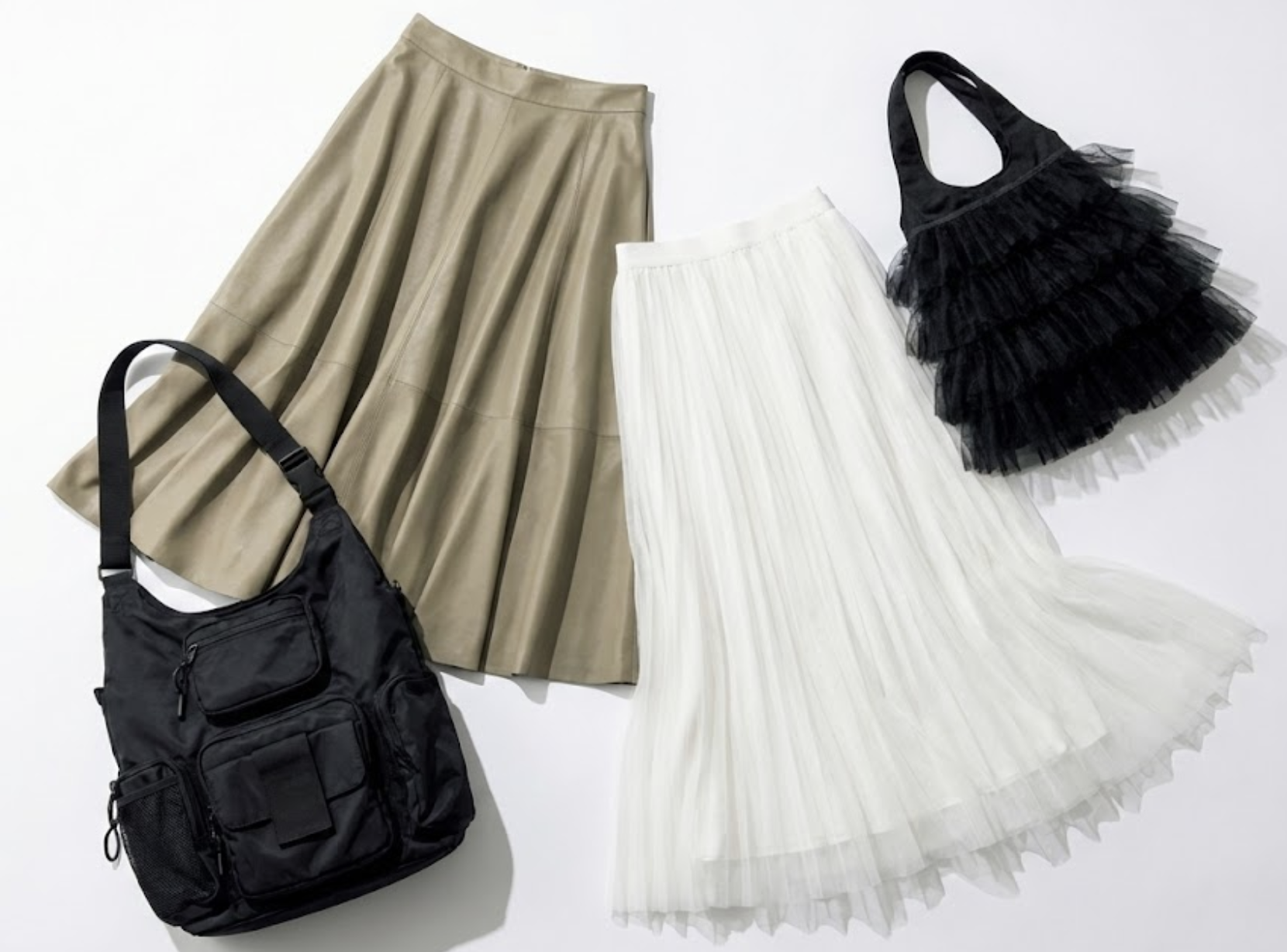- チュールスカート・変形スカート:ブランドの代名詞とも言える、ボリューム感のあるスカート。