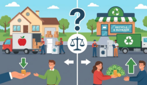 「金額だけ」で見ると、引越し当日にまとめて手放すほど損をしやすいです。 理由はシンプルで、引越し当日は時間制約が強く、売却先の比較や査定条件の調整ができずに「条件の悪い出し方」になりやすいからです。 一方で、家族世帯では時間と手間が最大のコストになりやすく、必ずしも「高く売る」が最適解とは限りません。