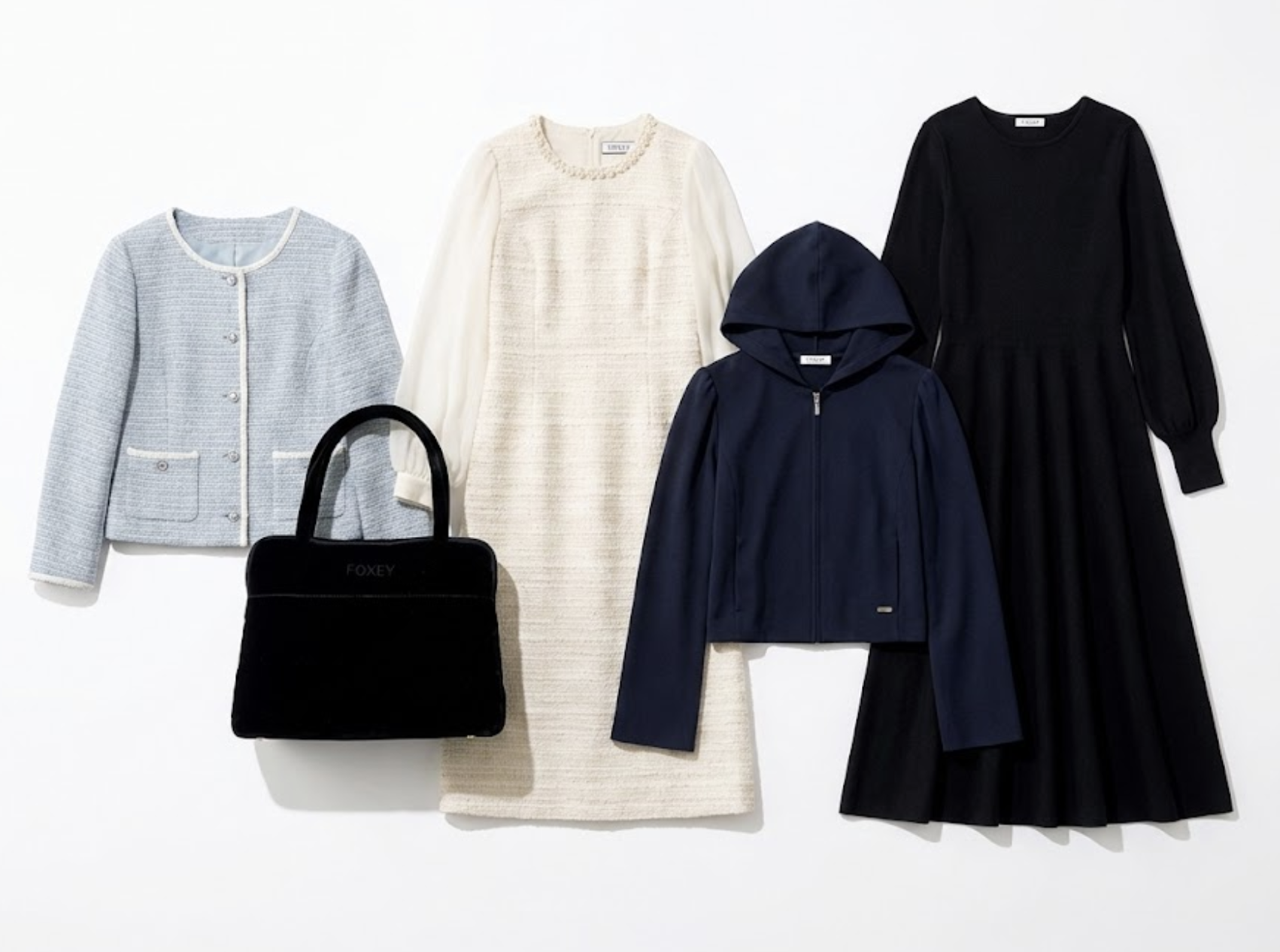- FOXEY NEW YORK(フォクシーニューヨーク):ホームクリーニング可能な素材が多く、日常使いしやすいため中古市場で非常に回転が早い人気ラインです。